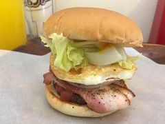 ベーコンエッグバーガーが人気ということで食べに行きました。他の佐世保バーガー店と変わらず,ボリュームあるバーガーでした。やはりベーコンが自慢というだけあり,カリカリで香ばしいベーコンの香りと濃厚な味わいが口いっぱいに広がり,とても美味しかったです。ブラックペッパーもよくきいていて,コーラがよく合う,味がやや強めのバーガーだと思いました。
