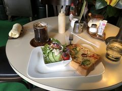 ので、ランチのドリンクとサラダ、ピザトースト