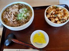 冷たいそばかき揚げ丼のセットを注文。美味しくいただきました。そば普通盛りでもお腹いっぱい!