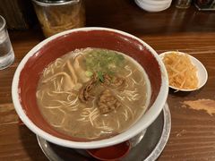 徳島に来たら必ず食べます。徳島の駅前はいつも混んでますが、チェーン店なのか他にもあります。駅前じゃない方がゆっくりできますよ。麺は少なめで替え玉するのがいいみたいです。地元の人は麺かためで替え玉してました。味は濃いめでお店の無料のもやしが美味しいですよ。 詳細情報をみる - 行った時期:2019年8月12日