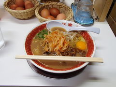 徳島ラーメン。無料の生たまごをのせていただきました。