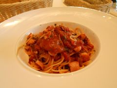 パスタランチをいただきました。新鮮なハマチを使ったカルパッチョや、タコの歯ごたえが楽しいトマトパスタなど、地元の野菜と魚が入った美味しいイタリアンでした。