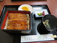 かなりの人気店らしく、開店の少し前に行ったら、すでに3組位並んでいました。鰻は少し柔らかめで、蒸してあるのかと思うほどでしたが、関西圏なので焼きがのみだと思いますが・・?失礼ながら、想像に反して上品な味で、美味しい鰻だと思います。ただ、個人的にはもう少し表面がカリッとした方が好みです。それでも値段がとても安いので、大満足でした。
