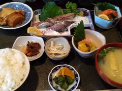 関サバが食べたくて訪問しましたが、せっかくなので関アジ関サバ定食を注文。関アジもそうですが、特に関サバは弾力がすごくてサバの概念が覆ります。刺身は大ぶりに切ってあるので食べごたえがあり、小鉢も充実しています。