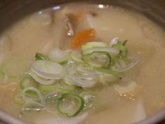 白味噌を使った、だんご汁は、大分名物です。体に染み渡る美味しさです。大根や人参、里芋が入っていて美味しかったです。