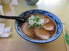 昼食に立ち寄りましたが、食堂のイメージ通りの店で、ラーメンの他のメニューも豊富です。ラーメンが目当てで立ち寄ったので、今回はチャーシュー麺にしました。ちぢれ麺で濃いめの醤油ラーメンで想像通りの懐かしい味でした。