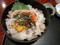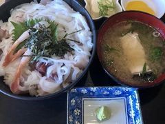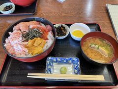 祝日で混雑しており、1215ころに訪問し、私たちがランチのラストでした。すでに売り切れメニューもありましたが海鮮丼はラストにゲットできました!
