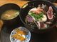 市場やお店で購入したひものなどを軒先で焼いてもらうことも可能。カツオ丼や定食などどれもリーズナブルで美味。