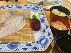 泳ぐ魚を眺めながら、大好きなイカ料理をいただくことができ、大変満足いたしました。特にイカの天ぷらは衣が軽く、食感が良く、とても美味しかったです。