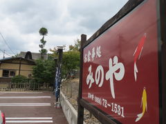 茅葺きの屋根がある古民家風のお店です。店内は単なる昭和レトロだけでなく、江戸時代の鎧や火縄銃などが天井近くに展示、昔懐かしいラジオや変わったそろばんまで、所狭しと展示されている。骨とう品好きならおススメのお店だ。オーダーしたのは、しこたまそばとおむすびの定食。肉そばと山菜そばのミックスのようで、いとこどりという感じ。蕎麦は細麺、賑やかな具材との相性が抜群。特に、スープがうまい。やや大きめのおにぎりはゴマときゃらぶきが入っている。実に素朴で味わいがある。津和野にまた来る時があれば、ぜひとも寄ってみたいお店の一つだ。