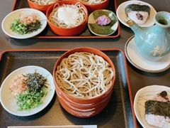 松江城の観光ついでに寄りたいお店です。少し行列に並びました。手打ちの割子そばはもちろんですが、おにぎりも美味しいですよ。