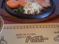 温かい木のぬくもりが感じられるログハウス風のお店でした。自然の中にいるようでとても居心地が良いです。ランチはハンバーグやステーキなどがあり熱々の鉄板ではこばれてきます。お肉はとってもジューシーで美味しかったです。サラダ、ゴハン、飲み物もついてお得だと思いました。