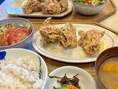 ランチで、から揚げ定食を頂きました。ご飯は白ごはん、雑穀米から選べてお代わりが出来ます。具沢山のお味噌汁、サラダ付き。から揚げはカラッと揚げてありシンプルな味付けが良いです。