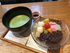 大雨で濡れて寒かったので、お茶しに行きました。お抹茶とぜんざいのセットで550円。小豆がたっぷり入ったぜんざいは甘すぎず、美味しかったです。白玉2個と栗の甘露煮が1個入っています。お茶屋さんなのでお抹茶はもちろん美味しいです。季節がら抹茶チョコも一つくれました。