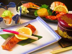 全て予算に応じた『お任せコース』(税抜4,000円以上〜)の完全予約制になります。旬の新鮮な魚介類を存分に味わえる隠れた名店です!中でも、季節ごとの【刺身盛り合わせ】、関東と関西の味噌をブレンドした特製みそを使って魚の風味を引き出した【西京漬】、日光ゆばの中に白身魚のすり身を入れた、焼売のような食感が心地好い【湯葉の煮物】の三品は、1度口にすると虜になる逸品ばかり!