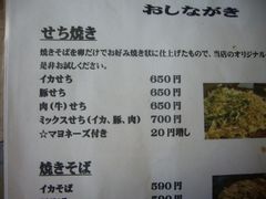 焼きそばを卵でまとめてお好み焼きのように仕上げるせち焼き。お好み焼きとも広島焼きとも違った食感で、なかなかおもしろいし美味。家でもできそうだけど、火力の強い鉄板で、手際の良いおばちゃんに焼いてもらうのがやっぱり美味しい!
