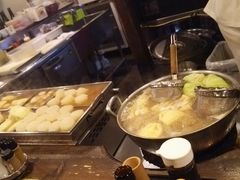 伏見にある美味しいおでん屋です。味の染みたダイコンが、ぷかぷか浮いて、見るからに美味しそうです。もちろん味も抜群でした。あまり、飲めないので、夕食におでん屋に行く事は珍しいのですが、関西では入った事がなかったので今回行ってみました。ロールキャベツは大きいので、アルコールを飲めない人にはお勧めです。牛スジは3種類の味が楽しめます。