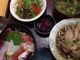 海鮮丼定食1700円 手打ちおろしそば、味噌汁、サラダ、漬物付き
