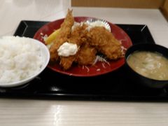近くにびっくりドンキーもあったので迷ったのですが、揚げ物が食べたくてこちらへ。この日はヒレカツとエビフライの定食をごはん大盛りで注文しました。