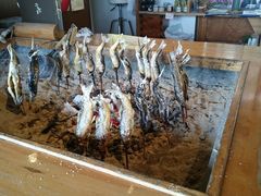 山の食堂って感じで味がある。店内に入ると囲炉裏には鮎や岩魚など串に刺して焼かれている。テーブル席も座敷もあり広い。人気なのか次々にお客が入ってくる。囲炉裏で焼かれていたお魚さん達が一匹、また一匹と瞬く間にいなくなる。