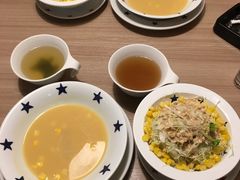ポタージュスープとセットサラダの他、スープバーのスープもいただけましたわぁ!