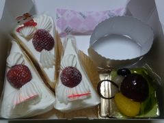 ケーキとかが美味しいです。いちご畑というショートケーキが美味しかった。また、和菓子も売ってますし、店内でも食べられるイートインスペースもあります。また、お持ち帰りで購入の時は、無料でコーヒーやお茶が飲めます。