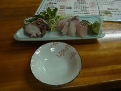 市街地の中心から少し離れているけど、広い店内には地元の人でにぎわっていた。お通しが刺し盛りで、ビールも安く、また行きたいと思った。