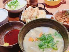 大分名物のとり天とだご汁の定食を注文。私はしませんでしたがご飯大盛り無料でした。