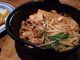 鉄鍋に入った煮込みジンギスカンは一見すき焼きのようですが、味付けは醤油ではなくジンギスカンのタレが使われていてあっさり目。マトン特有の臭みがあるので好みは別れると思いますが、自分的には有りな感じ。