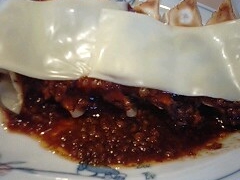 ラザニア餃子。肉みそとラザニアが餃子によく合いました