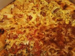 デリバリーで注文。ドミノのピザは、生地が選べるのですが、パン生地がふんわりしておすすめです。チーズもたっぷりのってます。