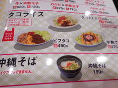 沖縄の吉野家には沖縄限定のメニューがあって楽しいです。タコライスと沖縄そばをいただきましたが、価格も安いしスタンダードでおいしかったです。