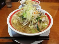 初めて行きました。長崎ちゃんぽんをイメージしていたのですが、近江ちゃんぽんということで様子がかなり違っていました。野菜の量を、小盛り・並盛り・1日盛りの3段階で変えられるのは良い。スープは、どちらかというと、すっきり透明に近い。ならば白湯系か醤油系の味なのかと思いきや、野菜を増したからでしょうか、甘い感じ。ちょっと「う〜ん・・・。」な印象でした。