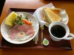 昼食に日替わり定食を食べようと行ったのですが、あいにく売り切れ。仕方なく12時間(7:30〜19:30)受け付けてくれるオールタイムモーニングセットにしました。昼食には少しボリュームが足りませんが、夏バテで食欲が低下していたのでジャストサイズでした。これはこれで良いものです。コーヒーが珈琲と呼べる美味しさです。