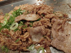 至高のそばめしは半熟の卵と絡まってマイルド甘辛です。牛スジも柔らかくて美味しい。