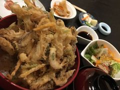 げんげの竜田揚げがお目当てでしたが、9月からのメニューとの事で食べられませんでした。白海老かき揚げ丼を注文して、結構な分量でしたが娘はペロリと平らげてしまいました。私が注文しましたばい飯も美味しかったです。