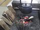 入口近くには囲炉裏があり、岩魚を焼いている。