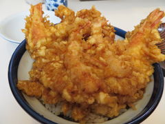 天丼を食べてきました。とてもボリュームがあり丼からあふれ出るぐらいです。エビがとてもぷりぷりで美味しかったです。