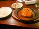 ハンバーグ定食。スープとドリンクもつきます。