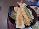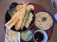 無料駐車場が広くて便利。店員さんは親切丁寧に対応、オーダーしたのは真あなごと大海老天丼と麺。麺はそばを選択。五種の天ぷらがのる天丼はボリュームたっぷり。天然活じめ真あなごの一本揚げに大海老天が大きくて目立つ存在に。ご飯にタレがたっぷりかかって天ぷらとの相性は抜群。ざるそばは中細麺。コシがあって喉ごしもいい。また食べに来たくなるお店です。