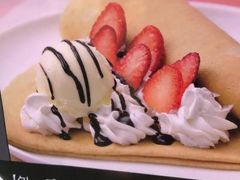 クレープがとてもおいしいです。生地の甘さなど私好みです。モチモチでその場で焼いてくれるので出来立てでおいしいです。300円の日が狙い目ですが、並ばないといけないことが多いです。