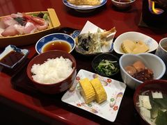 輪島キリコ会館近くのマリンタウンにあるお店です。輪島キリコ会館に【御陣乗太鼓】を観に行く前の夕食で利用しました。いしりの貝焼きやお刺身定食を注文しました。お刺身が小さな舟盛りで出てきてボリュームたっぷりだったので刺身は主人とシェアしました。