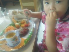 嫁はハンバーグカレー・私と息子は海鮮丼・娘はお子様ランチをいただきました。