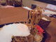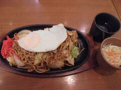 アピタ長久手店の二階にあるカフェです。「白壁カフェ花ごよみ」と同じ系列店です。店内は無料Wi-Fiがあり、少しレトロ感ある雰囲気。椅子のデザインがいい。オーダーしたのは、鉄板ソース焼きそば(ミニサラダ付き)のドリンクセット。ホットコーヒーはセットだと半額(¥260)に。しかも、ゴマがのった饅頭まで付いてくる。ウインナーやキャベツ、タマネギ、豚肉の具材が入った焼きそばは、麺が中細タイプでソースとの絡み具合がいい。アツアツでなかなかいい味だ。他のお客の半数ほどがこの鉄板焼きそばを注文。当店の人気メニューのようだ。コーヒーは多くのお客に受け入れられそうな味わい。和風の四角いコースターにのって出されるので、上品に感じられる。
