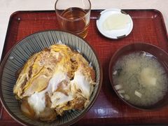 メニューにドンッと書いてあった一番人気の「カツ丼@750円」を食す。普通においしかったです。メニューにはソフトドリンクは外の自販機でご購入くださいと書いてあった。斬新!!