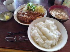 名物のトンテキニンニク定食(1720円)を注文、30分くらい待ちました。それもそのはず肉がデカい、分厚いため火を通すのに時間がかかるようです。とはいえ分厚いとはいえ柔らかくてチョイ甘い味も最高です。ご飯も豚汁もこれまたデカいのですがペロリといけました。女性にはチト厳しいサイズかもしれません。