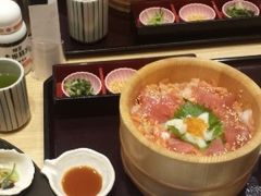 海鮮のおひつごはんを注文すると、ひつまぶしのように出汁がついてきました。そのまま食べたりお茶漬けにしたりして楽しみました。