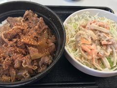 吉牛の定番はコモサラです。最近はアプリのクーポンも併用してお得に食べることが多いです。七味たっぷりがおすすめ。