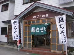 檜枝岐村にある民宿兼食堂で、名物の裁ちそばを食べることができます。山菜の天ぷらは最高に美味しいですね。また、きのこごはん、はっとう、そばがセットになった山人(やもーど)定食はとってもお得です。ちなみに、うどんもありましたよ。