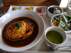 ショコラと聞いてチョコレートのイメージで寄りましたが普通に洋食屋さんですね。甘いものを食べてお茶を楽しむつもりでいたので、あれっ、となりましたがちょうどお昼時に訪れたので問題無し。ワンプレートランチも気になりましたが、ショコラの給食を選びました。食後のコーヒーもいいタイミングで出してもらえてよかった。地元の方には人気のお店のようで、かなり年配の方も訪れていましたが、入り口の階段はきつそうでした。